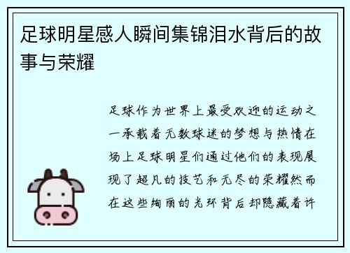 在当今足球界,年薪百万的足球明星常常成为媒体和公众瞩目的焦点。人们看到的是他们在赛场上的风光无限,却鲜少了解这些运动员背后所付出的艰辛努力与奋斗故事。本文将从四个方面深入探讨这些足球明星背后的奋斗与荣耀,包括他们的早期训练与成长、面对失败时的坚持、职业生涯中的重大决策以及成就之后的责任与回馈。这些故事不仅展现了运动员为了实现梦想所经历的艰难旅程,也体现了他们对这项运动的热爱和对社会责任感的担当。 ...