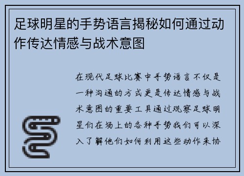 在当今社会,足球明星不仅因其在球场上的精彩表现而受到瞩目,他们的个人魅力、风格以及与粉丝互动的方式同样吸引了众多关注。掌握他们经典的拍照姿势,不仅可以使普通人在照片中更加出色,还能够提升个人形象和气质。这篇文章将从四个方面详细解析足球明星们的经典照相姿势,包括“自信的站姿”、“动态捕捉”、“亲密互动”和“创意道具运用”,帮助读者轻松掌握拍照技巧,展现最佳自我。在每个方面,我们将探讨不同姿势所传达的...