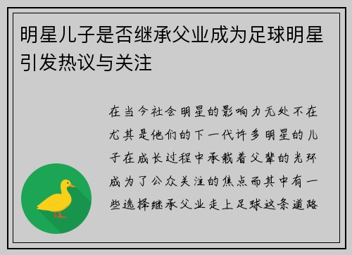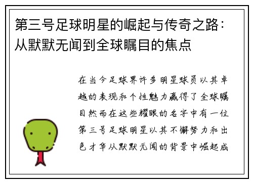 在当今社会,足球不仅仅是一项运动,更是许多贫民窟孩子们改变命运的希望之路。本文将深入探讨从贫民窟崛起的足球明星如何通过努力与坚持,打破生活的桎梏,实现个人梦想。我们将从四个方面进行详细阐述:首先,家庭背景对个人发展的影响;其次,训练与拼搏精神的重要性;第三,机遇如何改变人生轨迹;最后,成功后的责任与回馈。每一个足球明星背后都有不为人知的奋斗故事,他们用自己的经历诠释了梦想与现实之间的距离,也激励着...