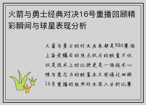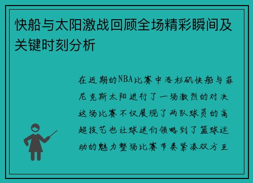 在即将到来的索尔纳与赫尔辛的激烈对决中,球迷们充满期待,希望能看到两队在场上拼搏的精彩瞬间。本文将从比赛背景、球队实力分析、战术布置以及球迷的心声四个方面深入探讨这一场足球盛宴。首先,我们回顾这两支球队的历史渊源和近年来的交锋记录;接着,对双方阵容进行详细剖析,评估各自的优劣势;随后,我们将讨论教练在战术上的安排以及可能采取的打法;最后,聚焦广大球迷对于这场比赛的热情和期待。无论是对决中的进攻花样...